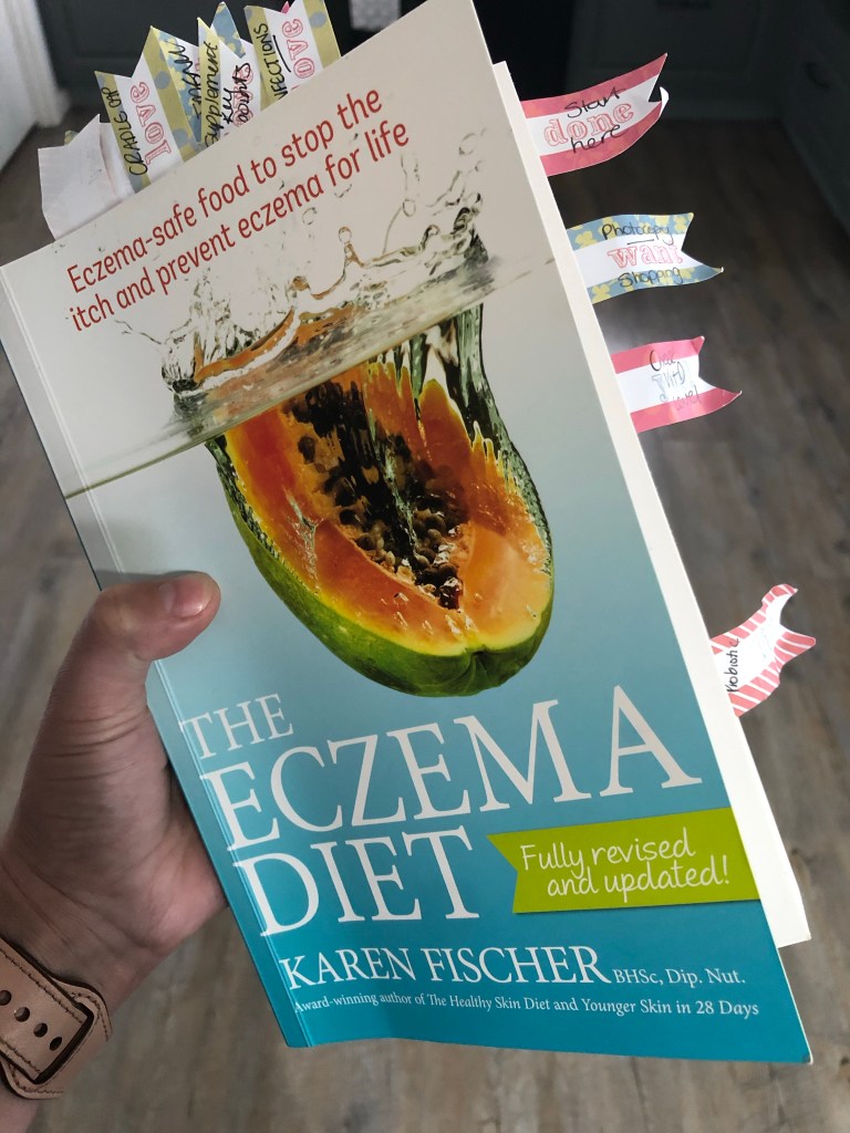 I was first told about Karen’s books through a Facebook post. I had asked a question about eczema on a page I was following and a beautiful stranger told me to check out The Eczema Diet by Karen Fischer. Immediately I jumped on Booktopia and ordered a copy. The day it arrived I read it all on the same day and madly tabbed pages for review (see totally un-insta-worthy pic of book).